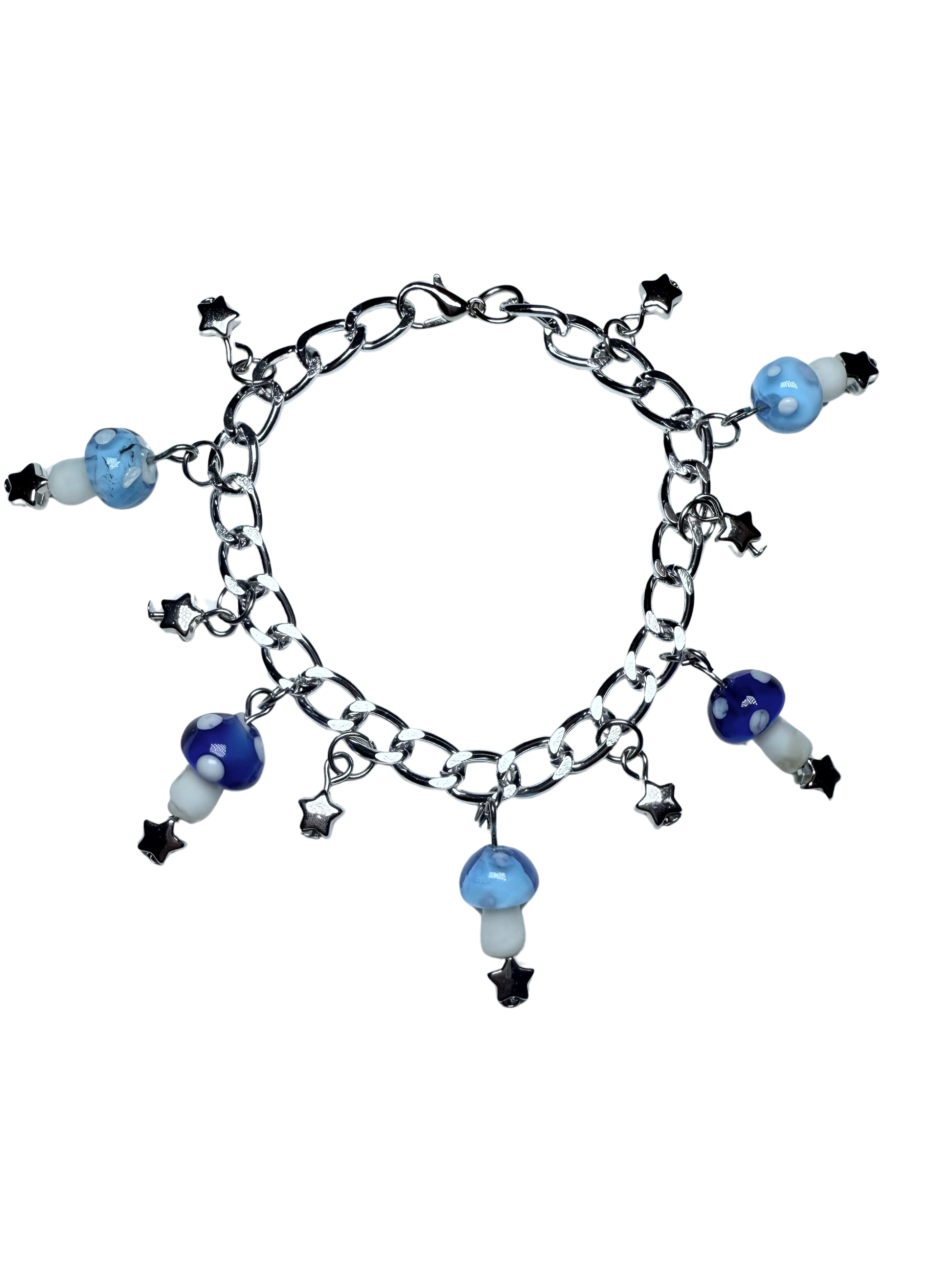 Royal Blue and Sky Blue Mushroom Bracelet with Star Detailing.