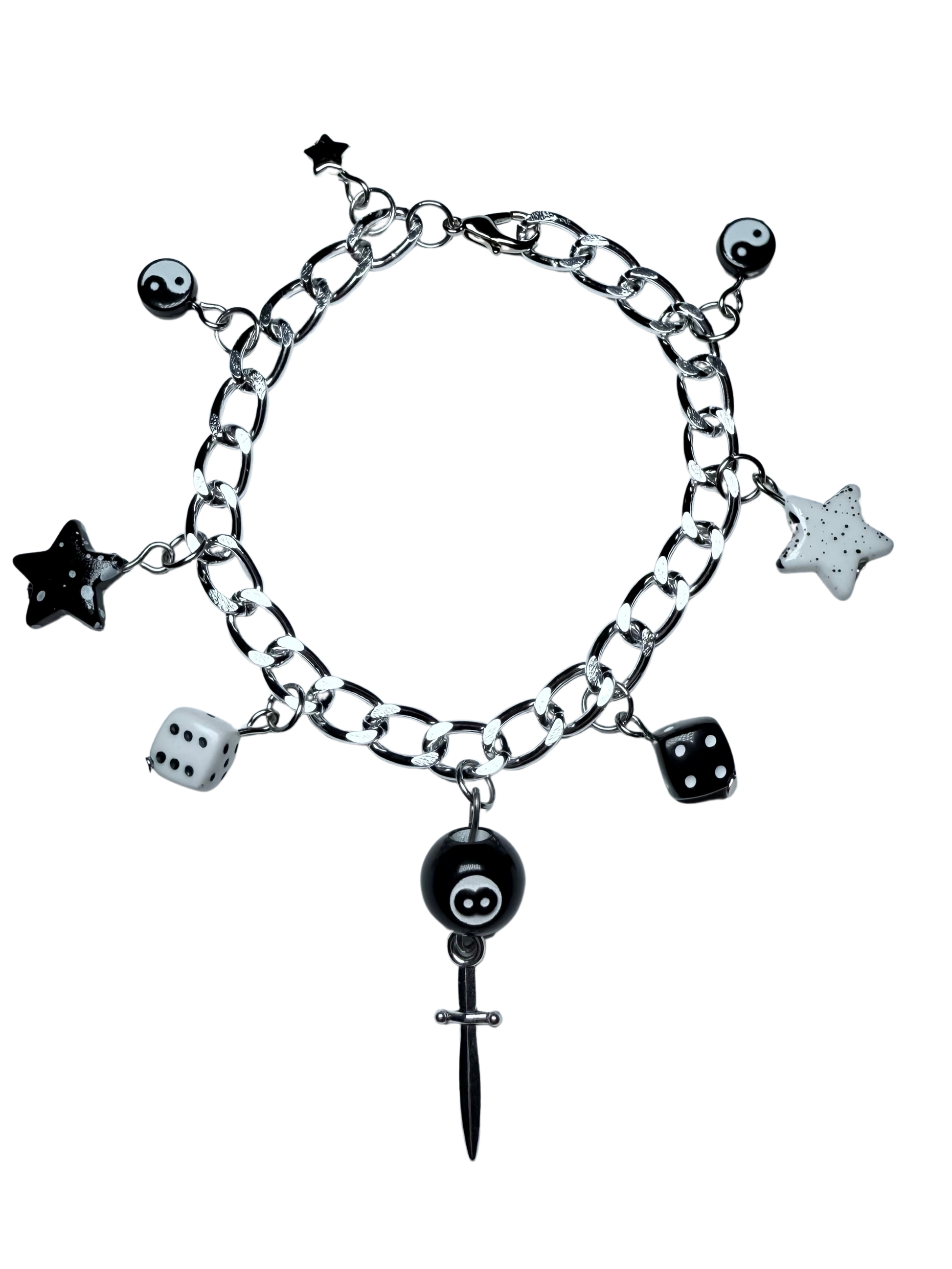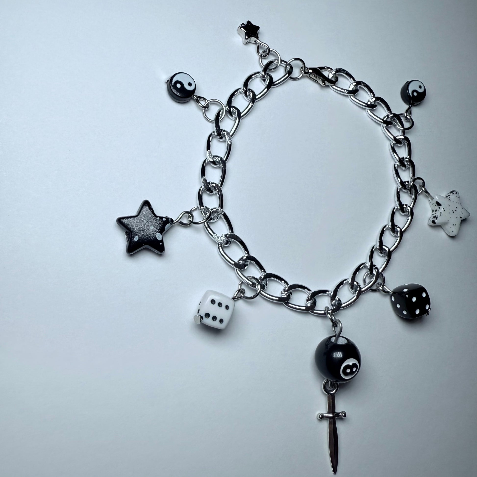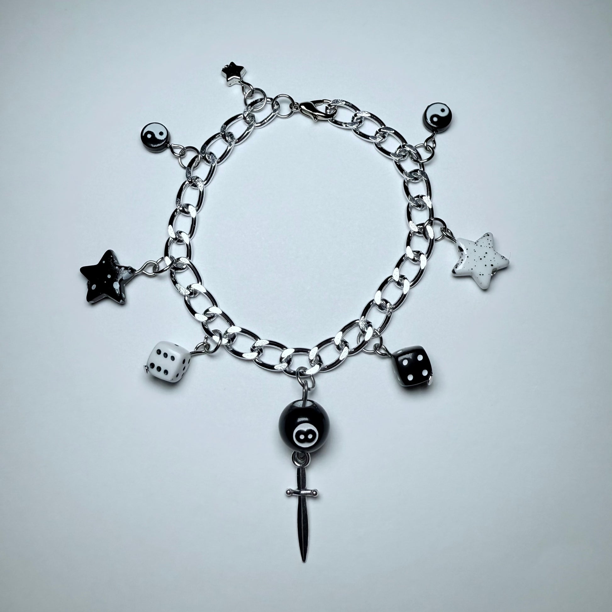 Black and White Themed Bracelet with a Variation of Bead Detailing.