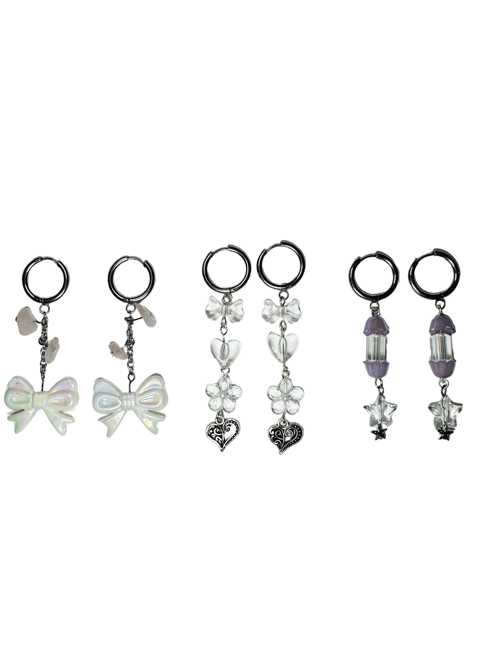 2: Clear Bow, Heart and Flower Earrings (2.5in)