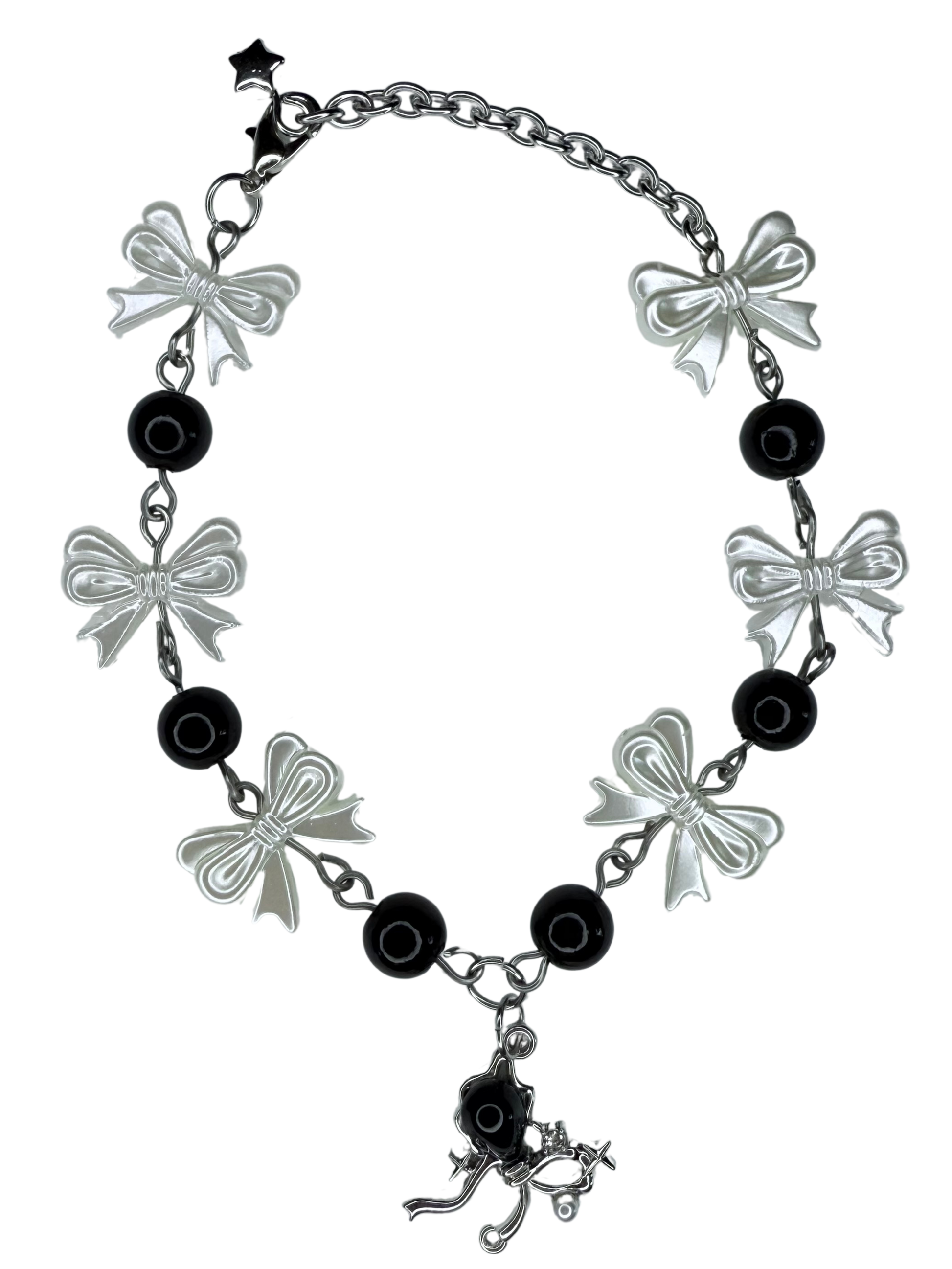 Black and Pearl Bow Themed Bracelet.